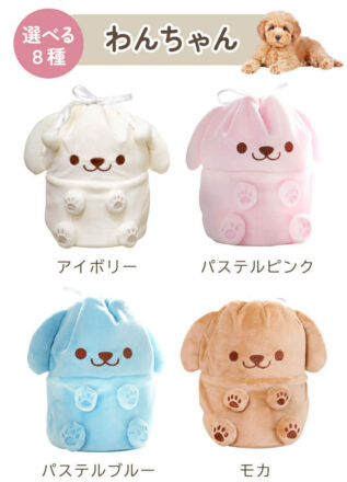 わんちゃん、ねこちゃんの2種類でそれぞれピンク、ブルー、ホワイトをご用意しております。